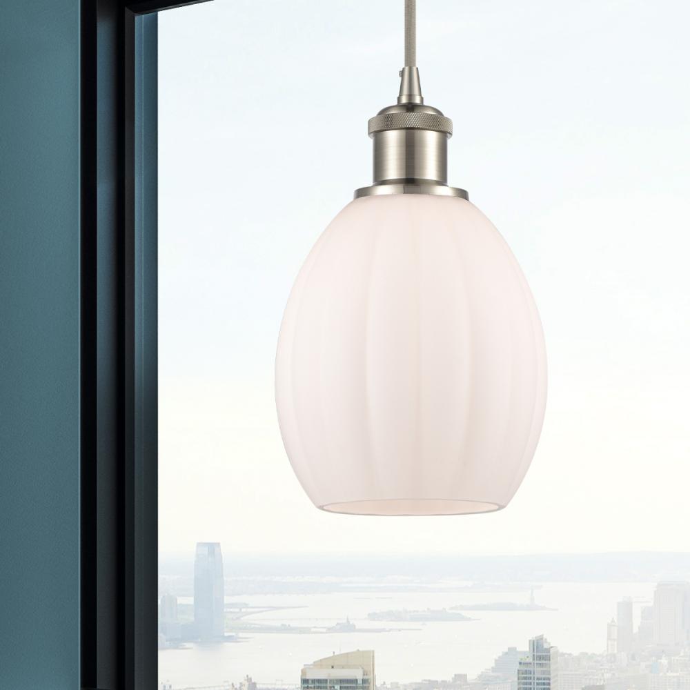 Eaton - 1 Light - 6 inch - Brushed Satin Nickel - Matte White Shade - Cord hung - Mini Pendant