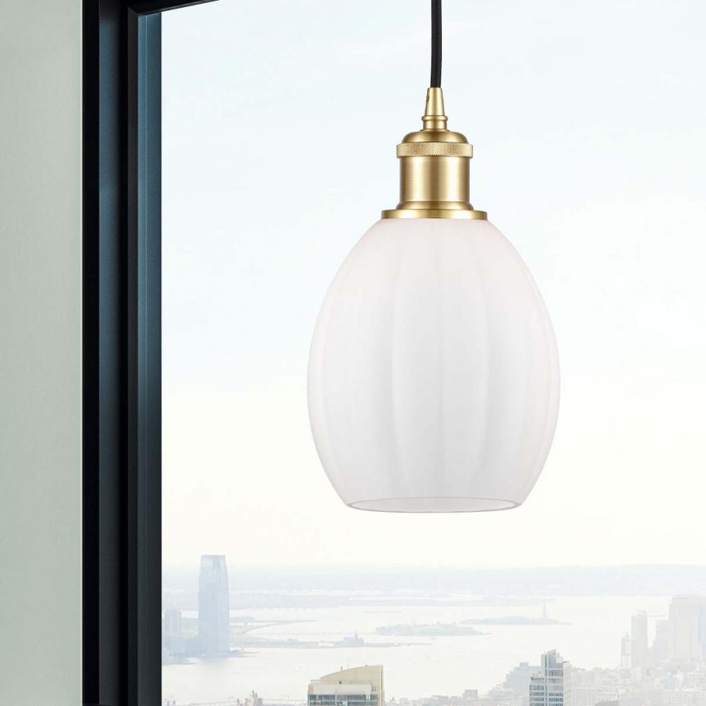 Eaton - 1 Light - 6 inch - Satin Gold - Matte White Shade - Cord hung - Mini Pendant
