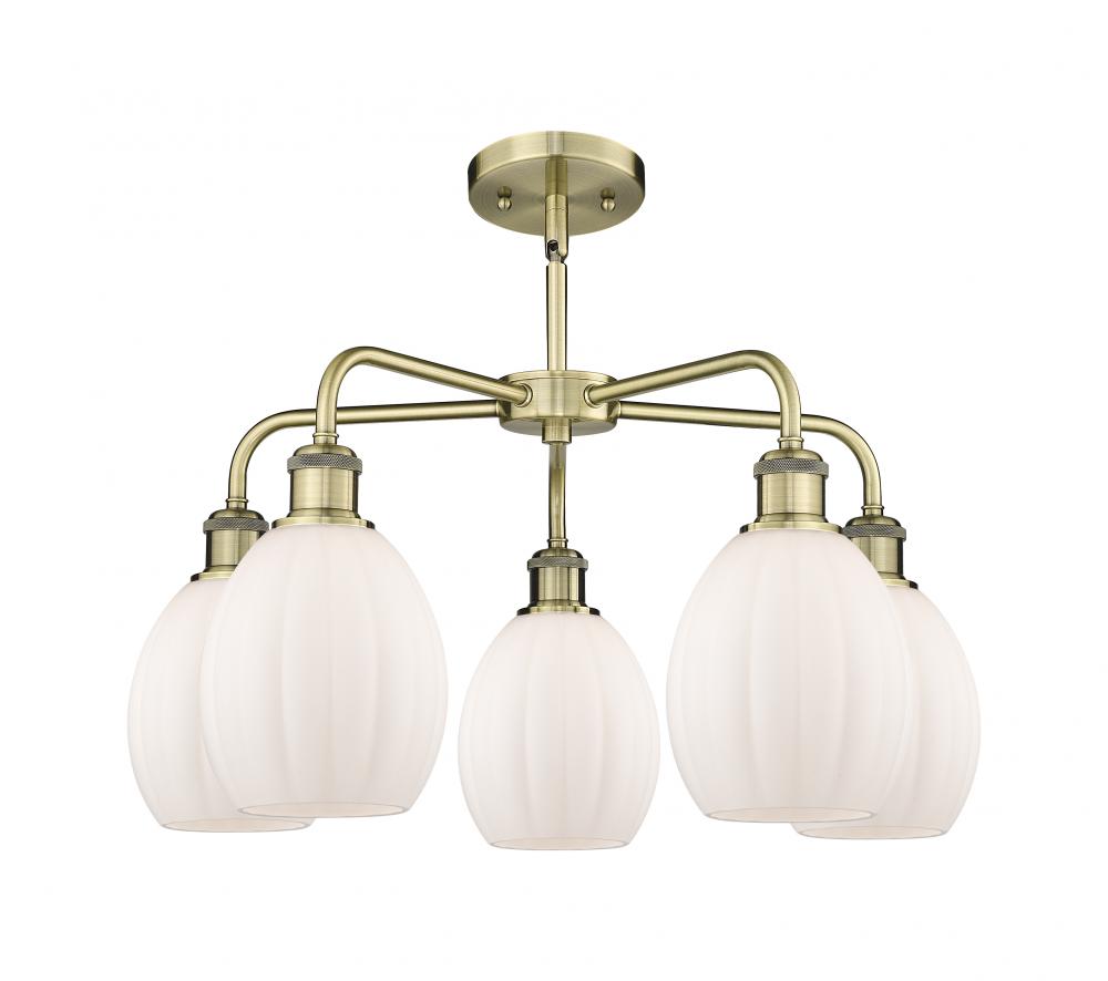 Eaton - 5 Light - 24 inch - Antique Brass - Matte White Shade - Chandelier