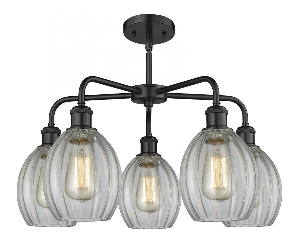 Eaton - 5 Light - 24 inch - Matte Black - Clear Shade - Chandelier