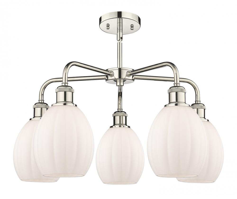 Eaton - 5 Light - 24 inch - Polished Nickel - Matte White Shade - Chandelier