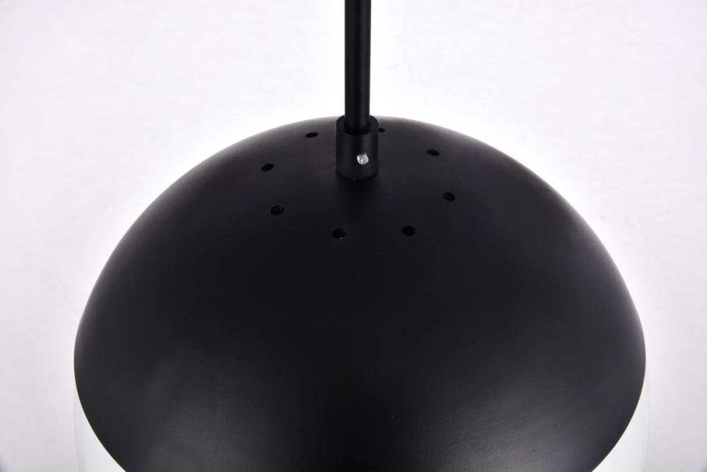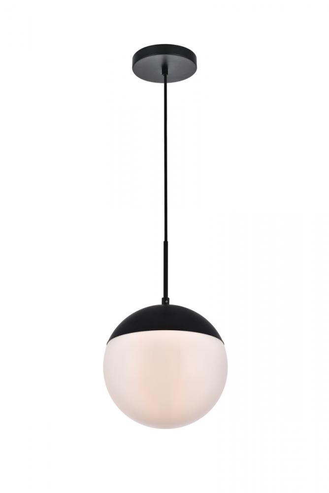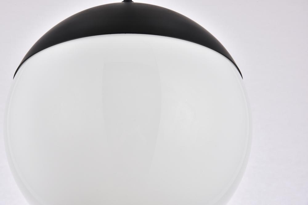 Refined style with a practical design, Eclipse hanging pendant lamps bring cosmopolitan sophistication anywhere, especially to an entryway, office, bathroom, bedroom, or kitchen. The smooth iron frame features a disk-shaped canopy and comes in a black finish. An adjustable black cord allows you to vary the hanging height from 18 to 65 inches. A touch of color on top of the frosted white spherical glass shade brings character to this classic style. Living in the big city has never been this easy.