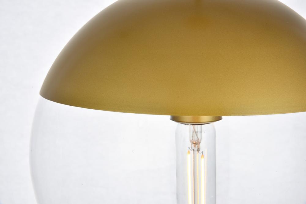 Refined style with a practical design, Eclipse hanging pendant lamps bring cosmopolitan sophistication anywhere, especially to an entryway, office, bathroom, bedroom, or kitchen. The smooth iron frame features a disk-shaped canopy and comes in a brass finish. An adjustable black cord allows you to vary the hanging height from 18 to 65 inches. A touch of color on top of the clear spherical glass shade brings character to this classic style. Living in the big city has never been this easy.