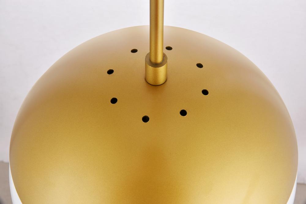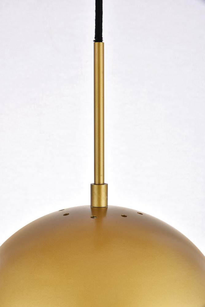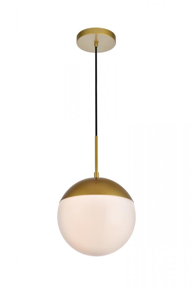 Refined style with a practical design, Eclipse hanging pendant lamps bring cosmopolitan sophistication anywhere, especially to an entryway, office, bathroom, bedroom, or kitchen. The smooth iron frame features a disk-shaped canopy and comes in a brass finish. An adjustable black cord allows you to vary the hanging height from 18 to 65 inches. A touch of color on top of the frosted white spherical glass shade brings character to this classic style. Living in the big city has never been this easy.