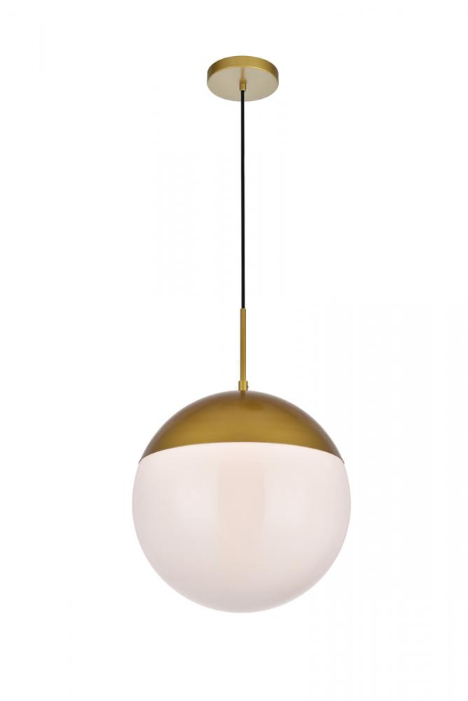 Refined style with a practical design, Eclipse hanging pendant lamps bring cosmopolitan sophistication anywhere, especially to an entryway, office, bathroom, bedroom, or kitchen. The smooth iron frame features a disk-shaped canopy and comes in a brass finish. An adjustable black cord allows you to vary the hanging height from 21 to 70 inches. A touch of color on top of the frosted white spherical glass shade brings character to this classic style. Living in the big city has never been this easy.