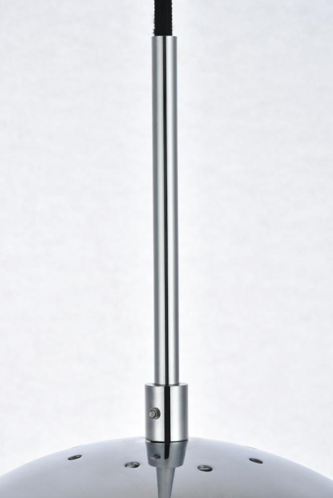 Refined style with a practical design, Eclipse hanging pendant lamps bring cosmopolitan sophistication anywhere, especially to an entryway, office, bathroom, bedroom, or kitchen. The smooth iron frame features a disk-shaped canopy and comes in a chrome finish. An adjustable black cord allows you to vary the hanging height from 18 to 65 inches. A touch of color on top of the clear spherical glass shade brings character to this classic style. Living in the big city has never been this easy.