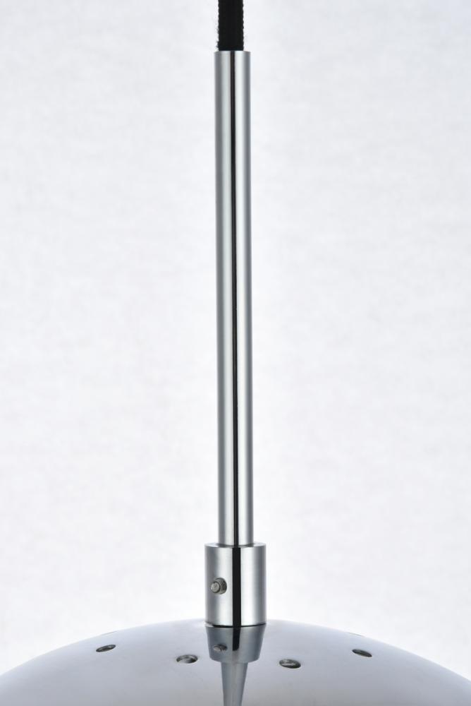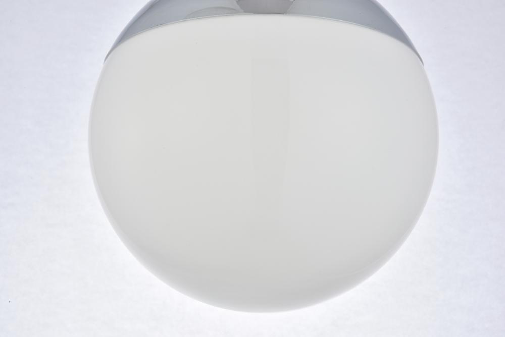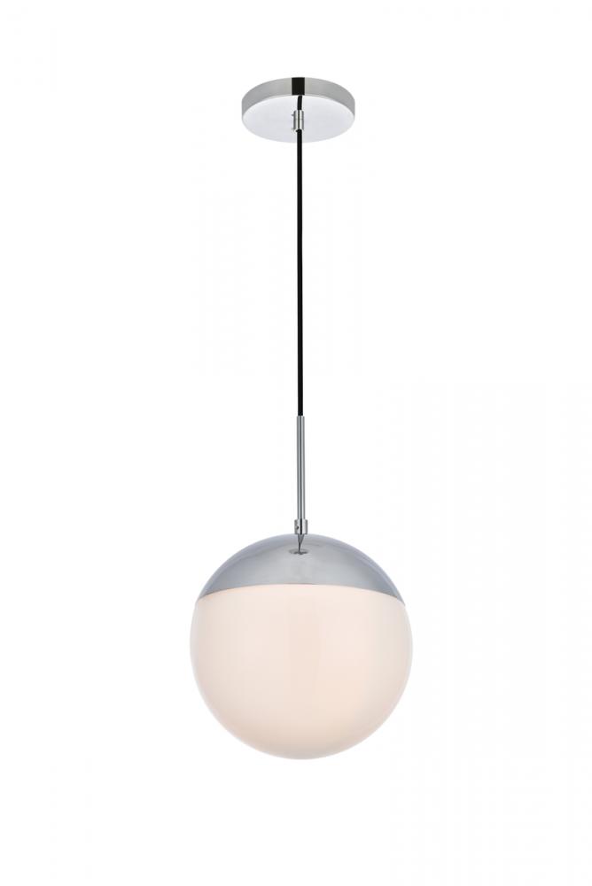 Refined style with a practical design, Eclipse hanging pendant lamps bring cosmopolitan sophistication anywhere, especially to an entryway, office, bathroom, bedroom, or kitchen. The smooth iron frame features a disk-shaped canopy and comes in a chrome finish. An adjustable black cord allows you to vary the hanging height from 18 to 65 inches. A touch of color on top of the frosted white spherical glass shade brings character to this classic style. Living in the big city has never been this easy.