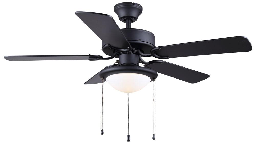 Elevate your living space with the Eclipse CF42ECL5BK Ceiling Fan, where modern functionality meets sleek design. This 42-inch fan, with its sophisticated matte black finish and five durable MDF blades, offers both style and efficient air circulation to any room. Designed for versatility, the Eclipse easily adapts to your space with its dual mount system, allowing for either a grand 17-inch downrod installation or a more discreet 13-inch flush mount setup.The centerpiece of this fan is its flat opal glass light fixture, which houses two 9.5-watt LED bulbs. These bulbs are included to provide you with immediate, energy-efficient lighting that brightens your room with a warm, inviting glow. Unlike traditional lighting, these LED bulbs offer long-lasting performance, ensuring that your spaces are illuminated without the need for frequent replacements.Operation is a breeze with the fan's pull chains, which offer a simple, reliable way to adjust the fan's speed and lighting. This feature adds a touch of classic charm to the fan, making it as practical as it is stylish.Perfect for homeowners who appreciate both aesthetics and functionality, the Eclipse CF42ECL5BK Ceiling Fan is an ideal addition to any interior design scheme. Its blend of efficient cooling, ambient lighting, and versatile mounting options make it a must-have for those looking to enhance their home's comfort and style.