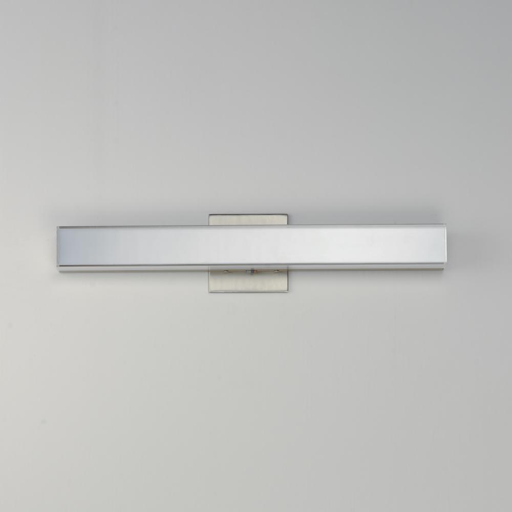 Defined by its contemporary edge, this series of flush mounts and wall sconces features a layered dimensional shade of acrylic. The thick miter cut Clear acrylic encases an inner opal White diffuser that is evenly illuminated by a high-powered integrated L