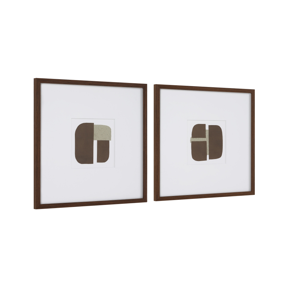 If neutral styling is the vibe you’re going for, this duo of framed wall art will get you there. Each collage style canvas features a textured matte finish for a contemporary look and feel. Mounted under glass with generously proportioned mats, these walnut-framed pieces are ready to bring a fresh update to any space.