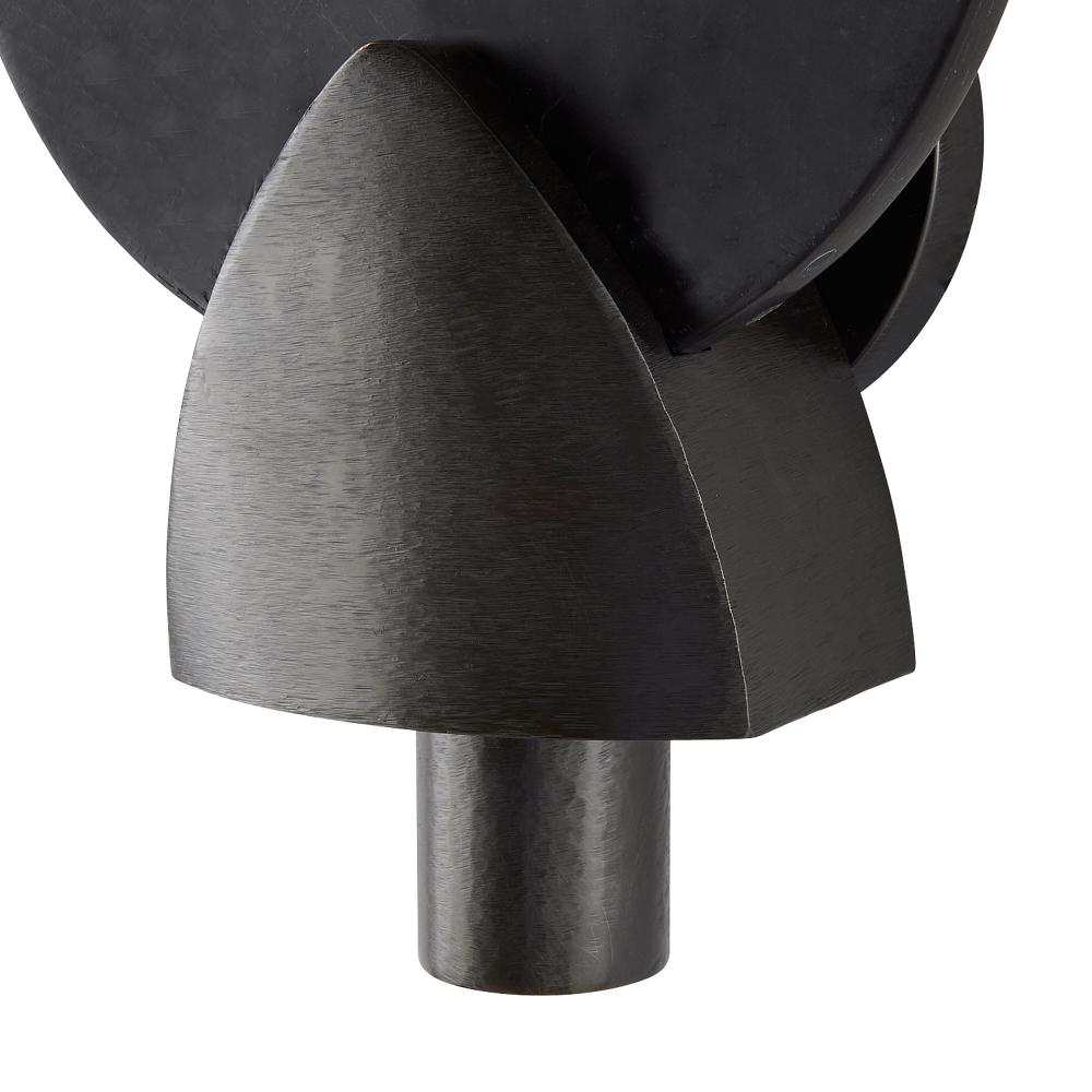 Like an Art Deco amulet or brooch, the timeless lines of the Edwin are even more eye-catching in a corridor or hallway. A black marble disc is mounted on a chattered English bronze steel plate, allowing the reflective back light to take center stage. Finish will vary.