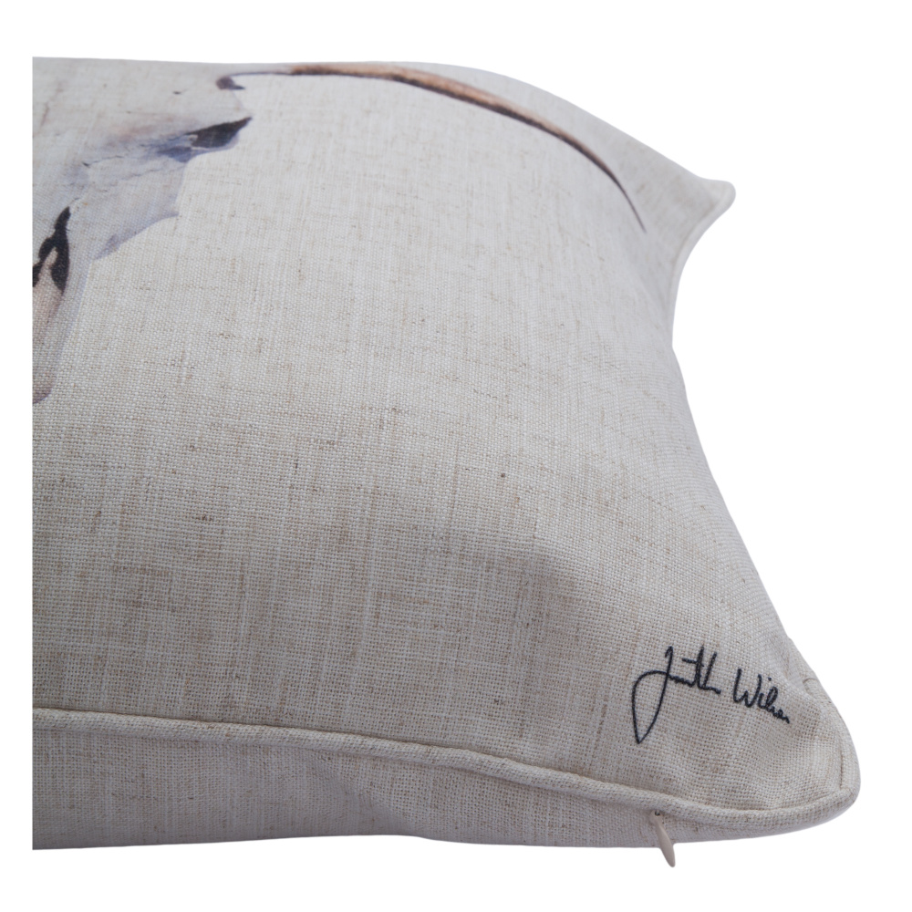 Compose a chic pillowscape on couches and beds with the traditional style of this decorative pillow. Printed in graphic detail on a square pillowcase, shades of white and brown capture the bare bones of the animal skull and horns with a rustic design that turns an ordinary cushion into a captivating work of art. A sumptuous combination of duck feathers and down fill the standard pillow sham with enduring softness, offering comfortable cushioning for every seating or sleeping arrangement.