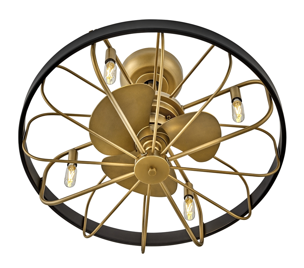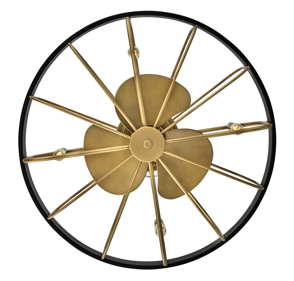 Eli is an instant favorite with unique design elements and modern edge. Available in Brushed Nickel with Matte Black, Heritage Brass with Matte Black, or Matte Black with Driftwood, this Fandelier adds an industrial-hip character to any indoor space.