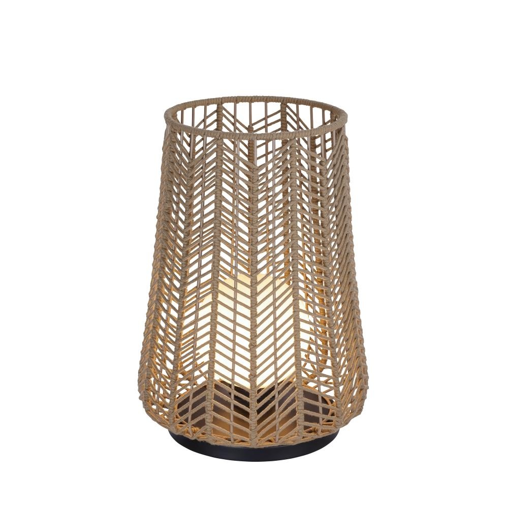 The elice accent lamp is part of the new outdoor portable and pendant collections. The lamp is wet rated with a powder coated finish. The light is nicely diffused through the weaved khaki brown cord. This accent lamp is a beautiful addition to an outdoor porch or sun room as well as can be used indoors.