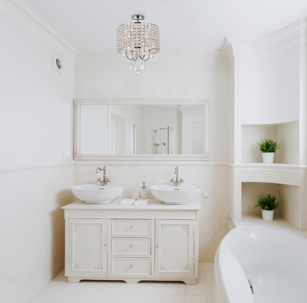 Lattice shade decorated with strands of crystals and suspended faceted crystal drops