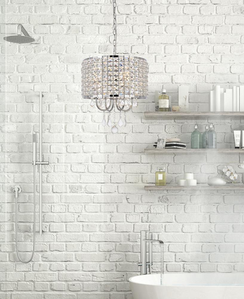 Lattice shade decorated with strands of crystals and suspended faceted crystal drops