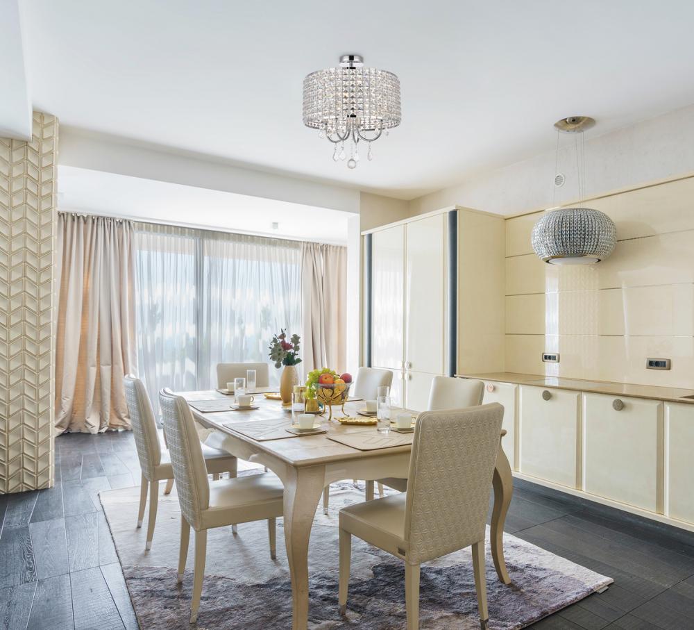 Lattice shade decorated with strands of crystals and suspended faceted crystal drops
