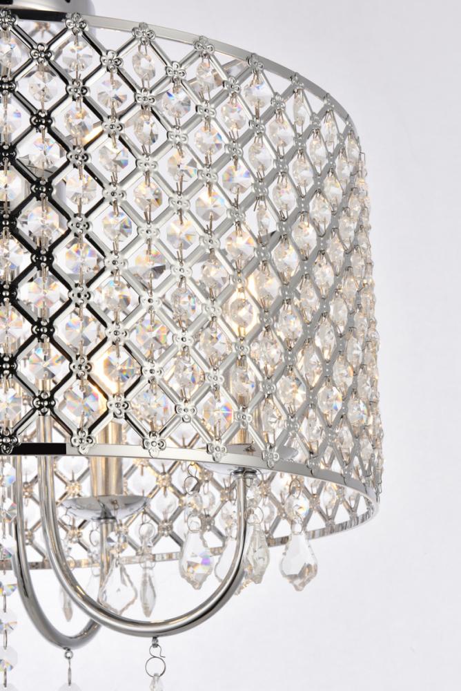 Lattice shade decorated with strands of crystals and suspended faceted crystal drops
