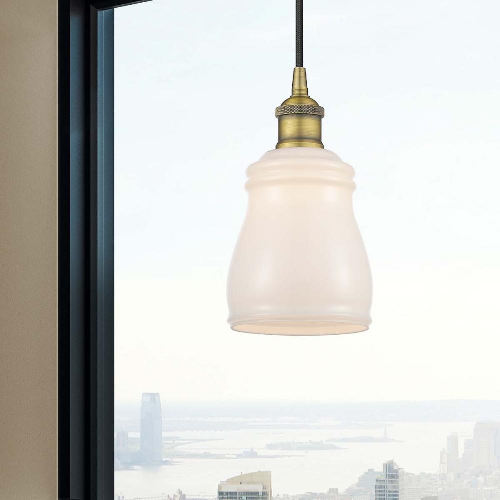 Ellery - 1 Light - 5 inch - Brushed Brass - White Shade - Cord hung - Mini Pendant