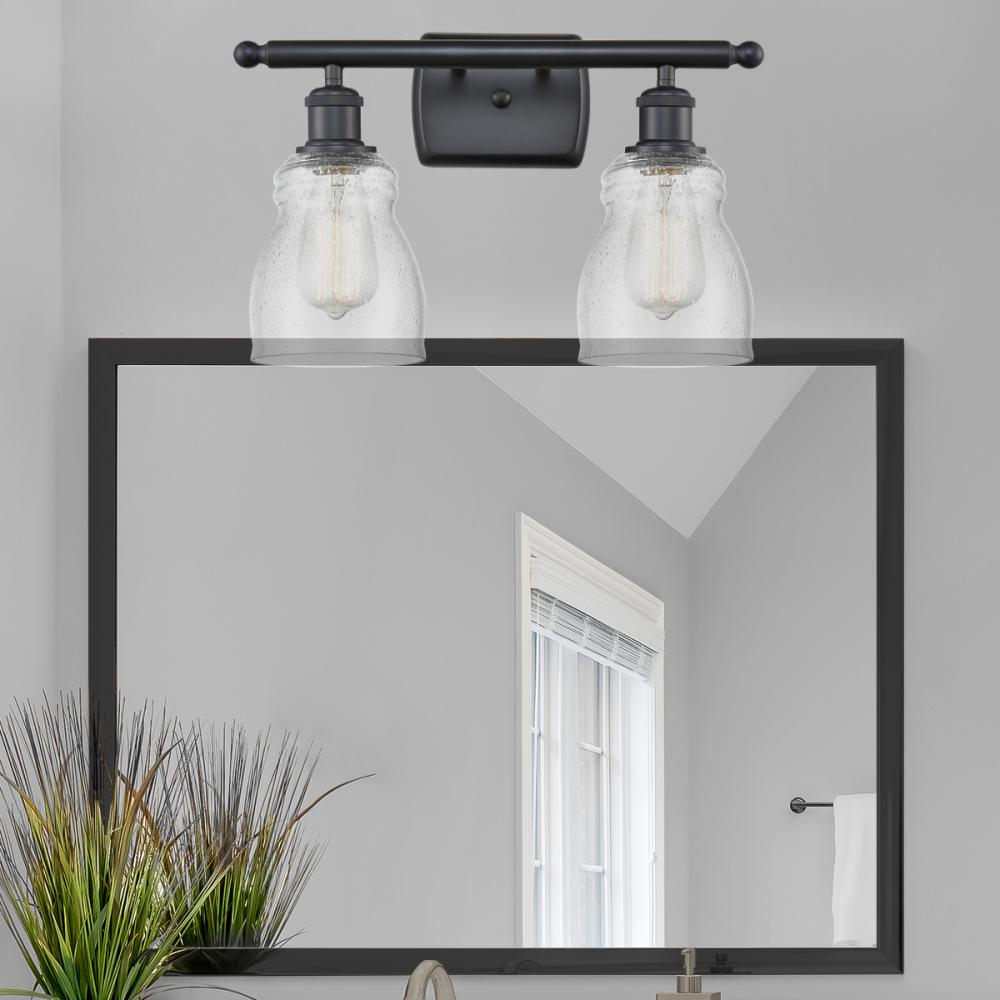 Ellery - 2 Light - 15 inch - Matte Black - Seedy Shade - Bath Vanity Light