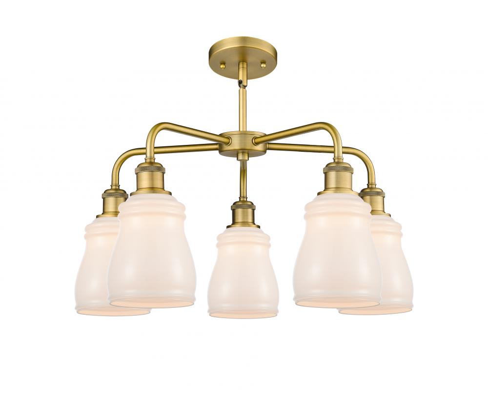 Ellery - 5 Light - 23 inch - Brushed Brass - White Shade - Chandelier