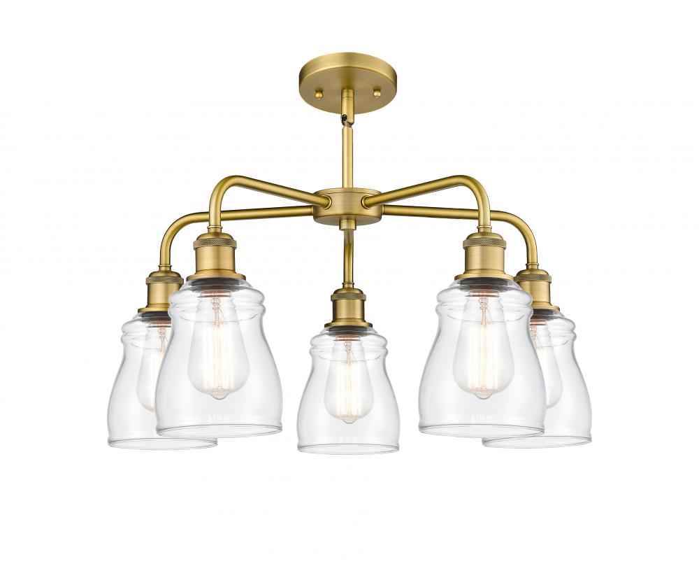 Ellery - 5 Light - 23 inch - Brushed Brass - Clear Shade - Chandelier