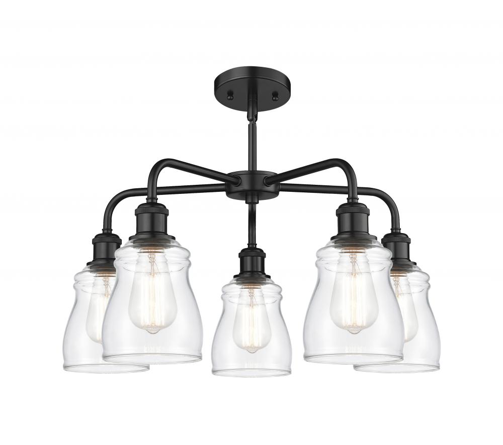 Ellery - 5 Light - 23 inch - Matte Black - Clear Shade - Chandelier