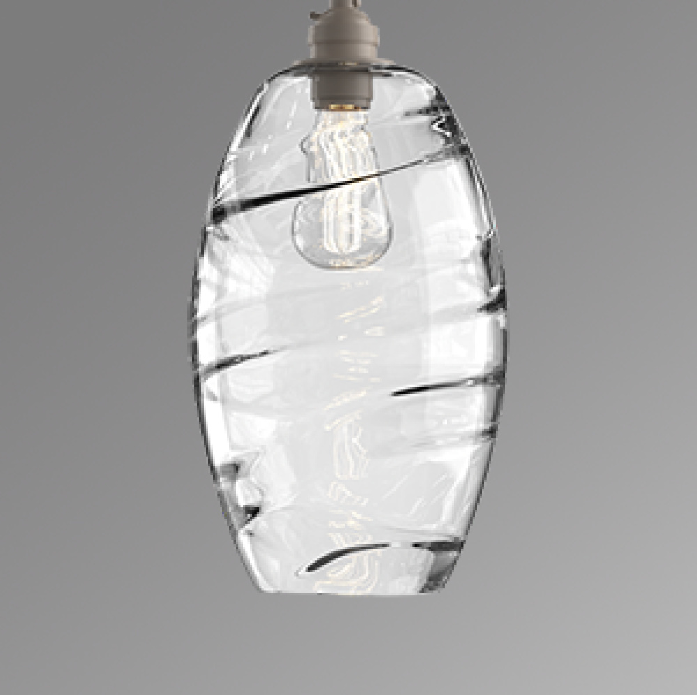 Handcrafted in North America by Hammerton artisans, the Ellisse Round Multi-pendant Chandelier showcases 3 elegant Ellisse pendants from hand-blown crystal glass and suspended from a round canopy by your choice of cloth-braided cord or artisan-forged chain. Each blown glass shade is expertly shaped to refract light in captivating ways, especially when paired with vintage-style bulbs. Suspension options include three vintage-inspired chain styles, all designed and crafted with exceptional attention to detail.