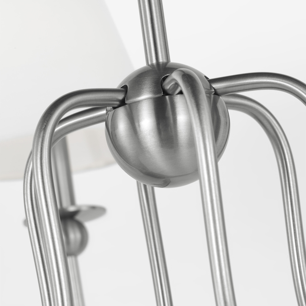 Crafted with Steel in a Brushed Nickel finish with white linen fabric shades
