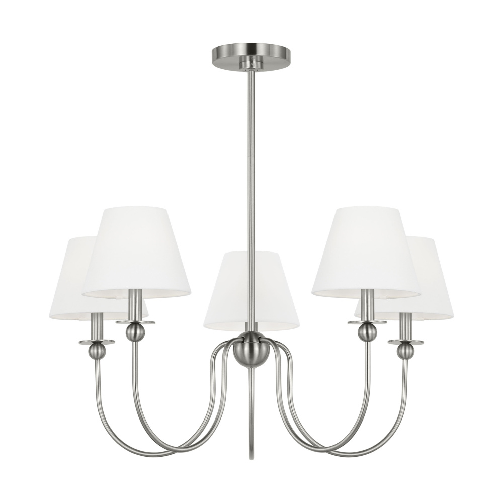The Elsay series by Drew & Jonathan updates the classic chandelier with the elegantly deep curves of its J-shaped arms. Subtle spherical and cylindrical details create a new sense of traditional aesthetics, enhanced by linen shades that lend a soft finish. This chandelier will create a sophisticated statement in dining rooms, living rooms and bedrooms alike.