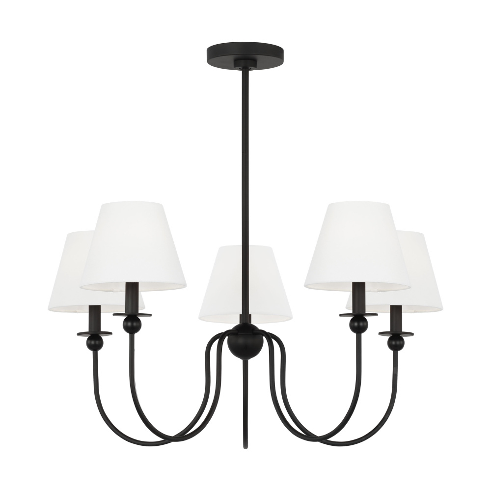 The Elsay series by Drew & Jonathan updates the classic chandelier with the elegantly deep curves of its J-shaped arms. Subtle spherical and cylindrical details create a new sense of traditional aesthetics, enhanced by linen shades that lend a soft finish. This chandelier will create a sophisticated statement in dining rooms, living rooms and bedrooms alike.