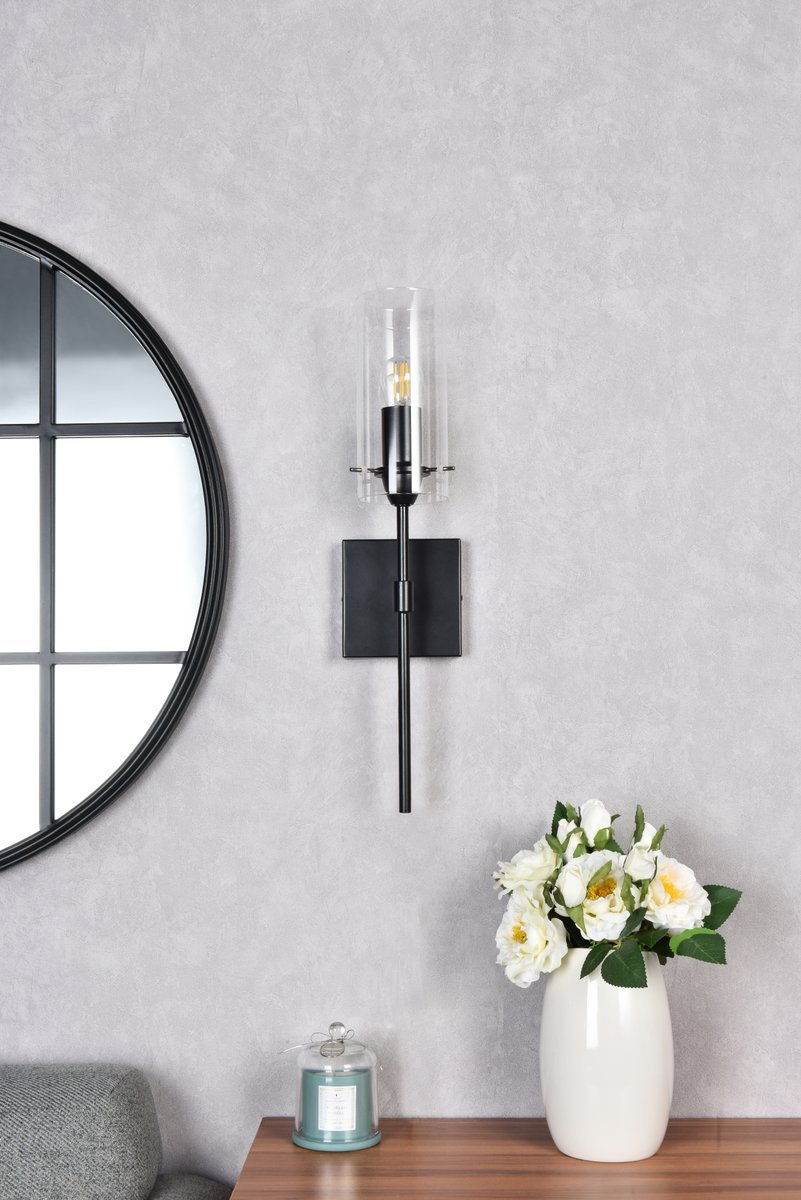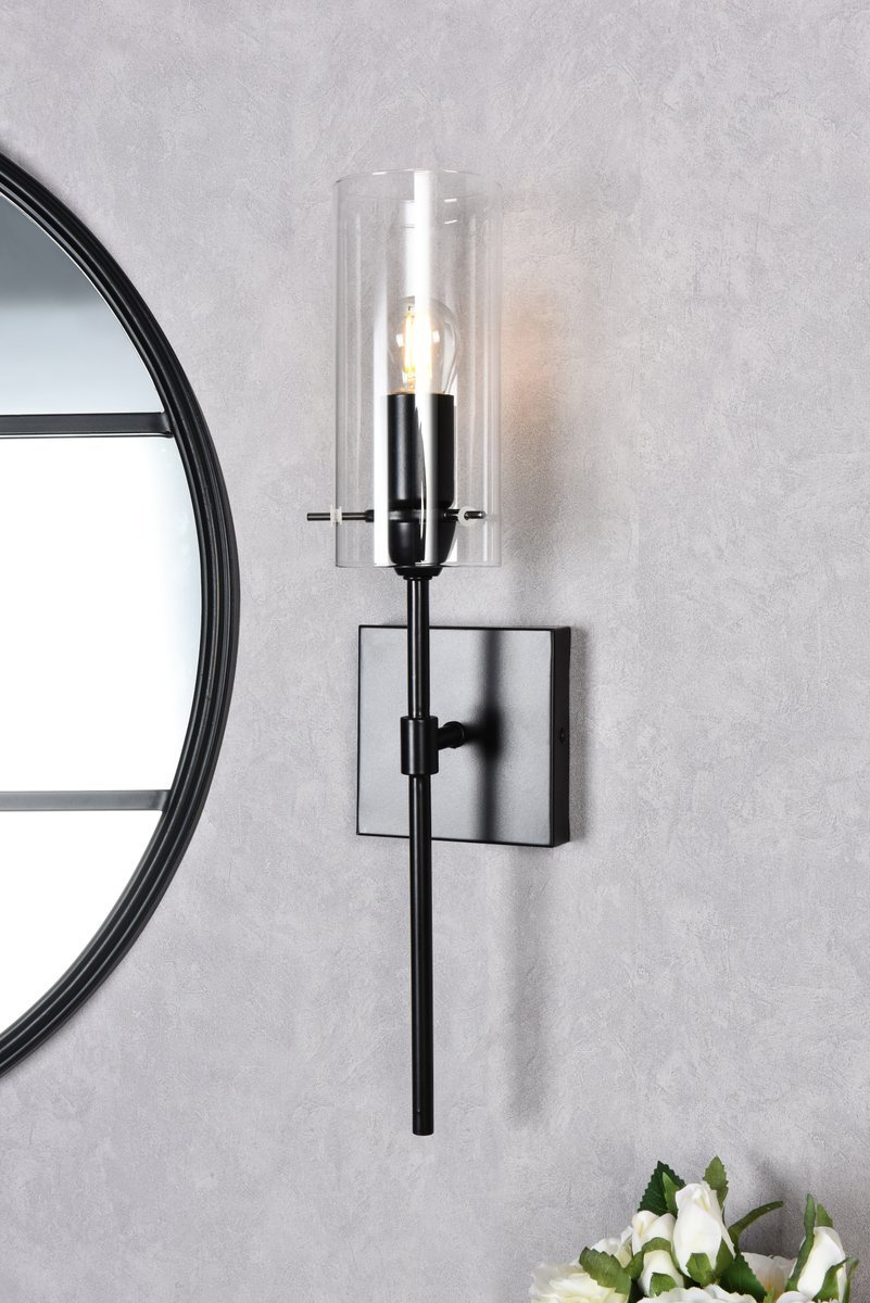 Brighten your space with the Elsreth Collection wall sconce. The cylinder glass and straight arm creates a modern candle lit look. Available in black or brass finish this lamp will illuminate the room. This product is dimmable and requires one E26 socket. Light bulbs not included.
