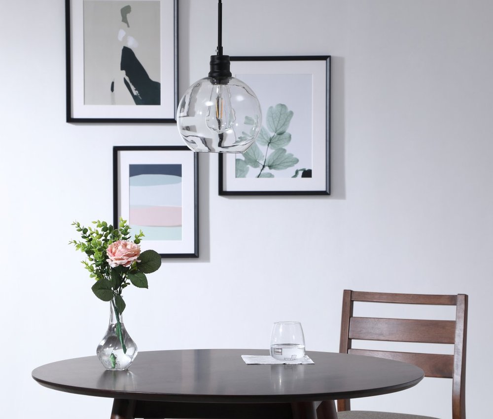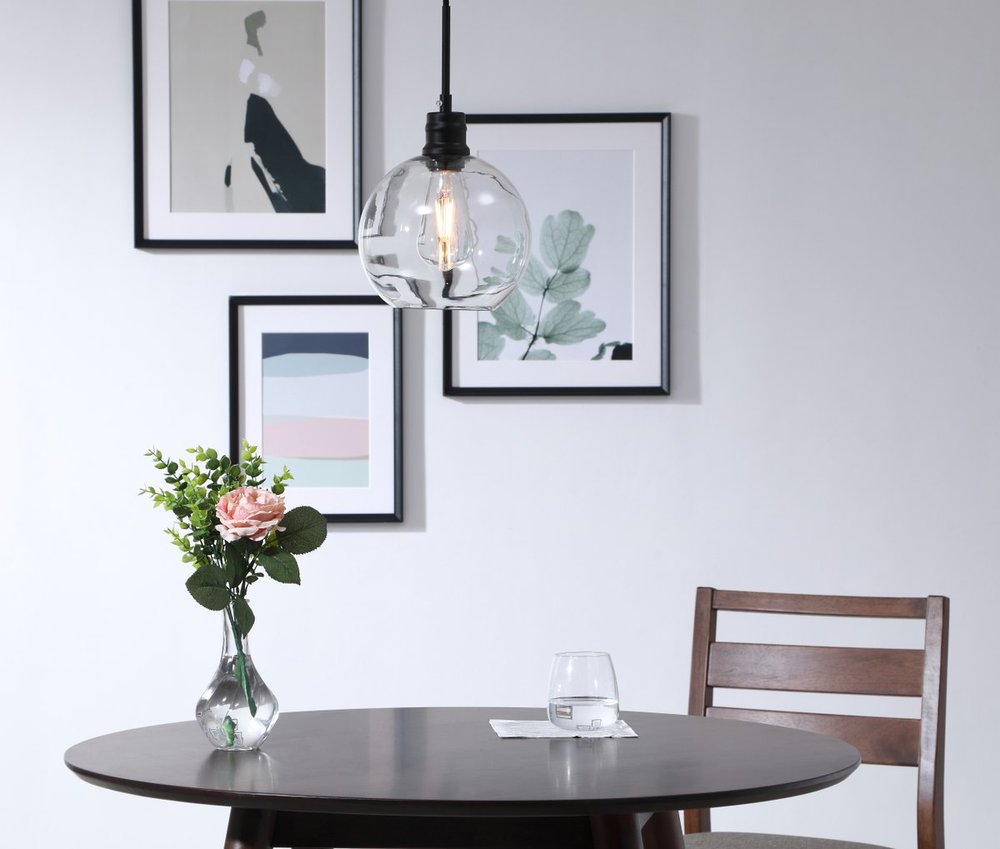 Clean lines and modern whimsy--that's the Emett Collection of pendant lamps. Its Single light makes it perfect for any small apartment or room space, but its also a perfect addition to any larger rooms that requires illumination, such as a dining room or living room. Available in a black, chrome, or brass finish with a round clear glass shade, it won't be too hard to fit this versatile lighting fixture in your home (light bulbs not included).