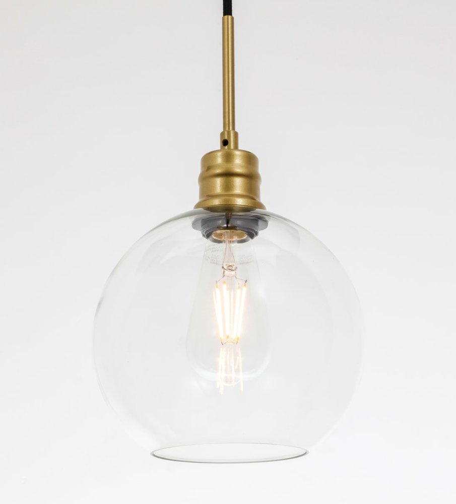 Clean lines and modern whimsy--that's the Emett Collection of pendant lamps. Its Single light makes it perfect for any small apartment or room space, but its also a perfect addition to any larger rooms that requires illumination, such as a dining room or living room. Available in a black, chrome, or brass finish with a round clear glass shade, it won't be too hard to fit this versatile lighting fixture in your home (light bulbs not included).