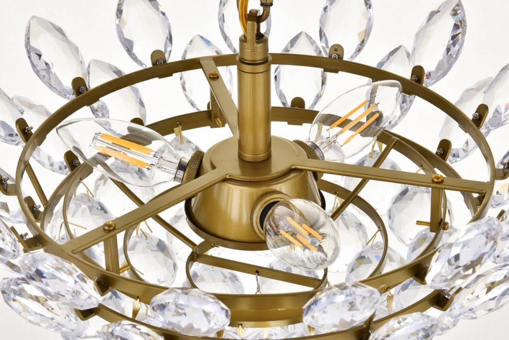 Tiers of clear multi-faceted crystals reflect the soft glow of candelabra bulbs