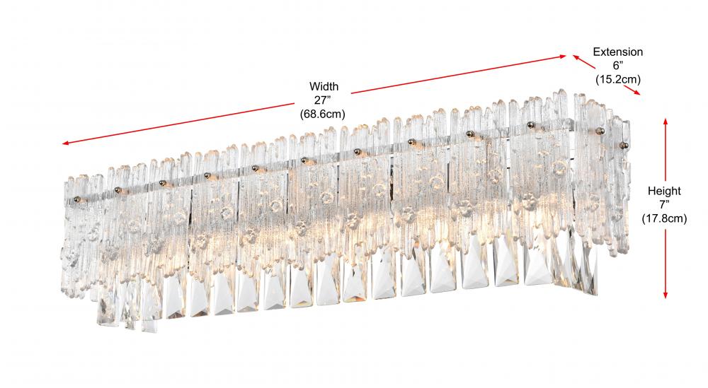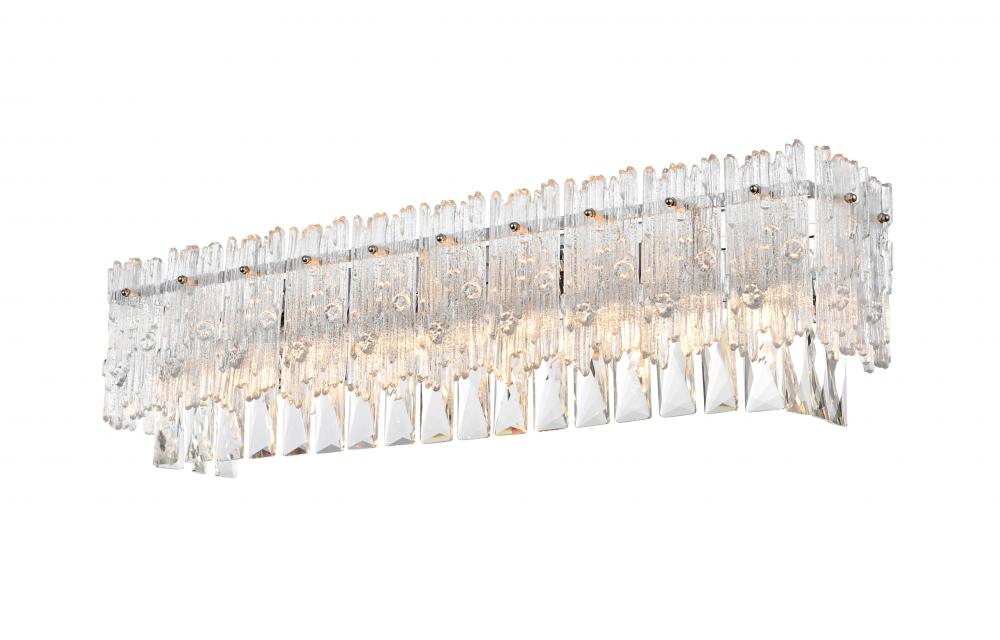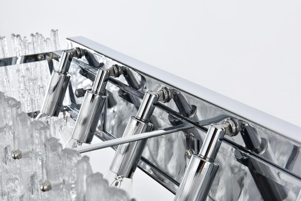 Transform your home with the opulent charm of this indoor lighting, meticulously designed to make a statement in any space. The light fixture showcases an intricate array of precision-cut clear crystals, each expertly faceted to maximize light refraction and create a dazzling display of brilliance. These crystals are complemented by textured glass accents that add depth and visual interest, casting a soft, shimmering glow across the room. Available in your choice of chrome or satin gold finishes, it is the epitome of luxury and modern elegance. As part of a coordinated collection, it also includes matching chandeliers, wall sconces and flush mounts, allowing you to create a harmonious lighting scheme throughout your home.