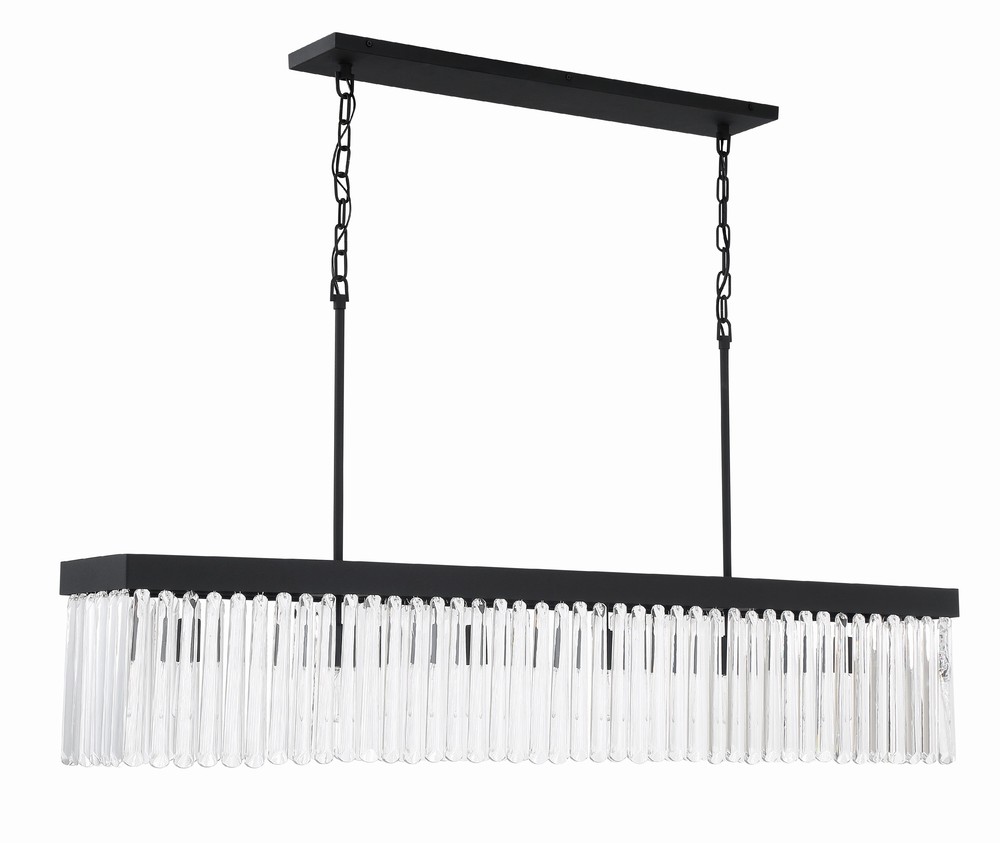 Art deco design is exemplified in the Emory collection. The collection features a row of smooth glass prisms hanging from a steel frame. Both the Black Forged and Modern Gold finishes, add all the sparkle and glamour you need in a fixture.