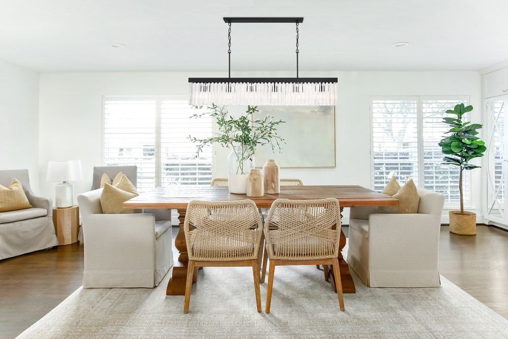 The elongated glass prisms provide a modern look.