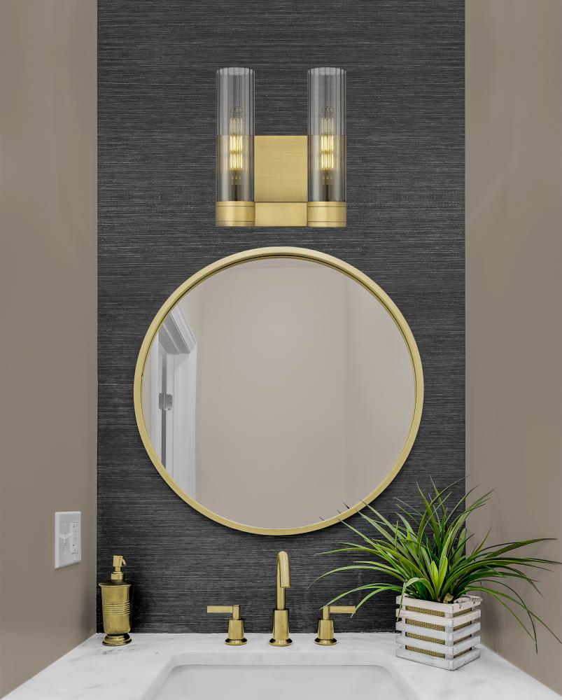 Empire - 2 Light - 11 inch - Brushed Brass - Light Smoke Shade - Bath Vanity Light