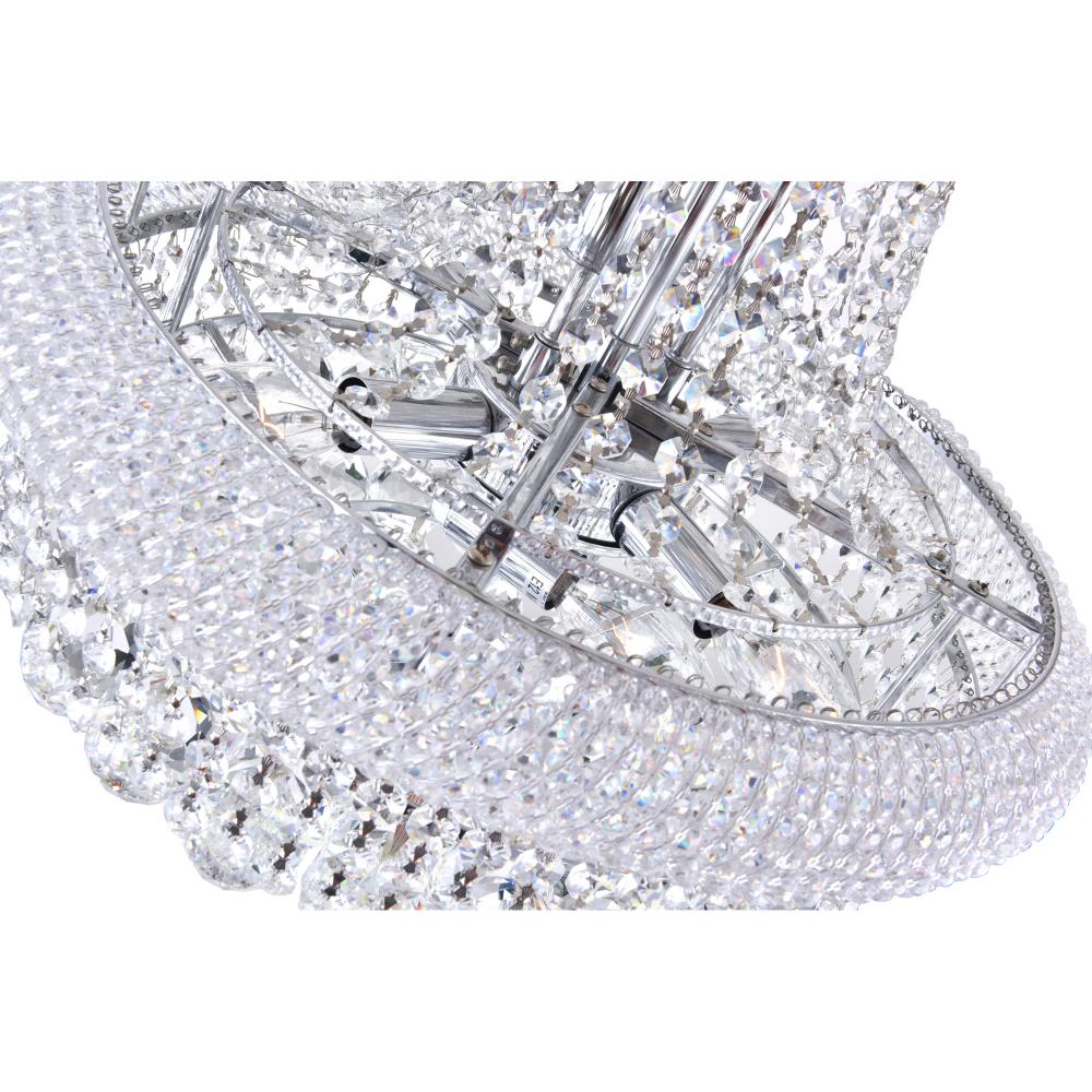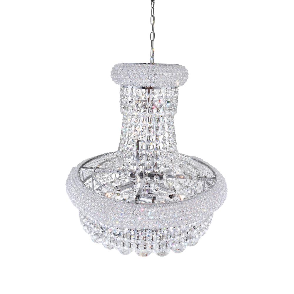 A sculptural lighting perfect above a dining table. The Empire 8 Light Chandelier in Chrome has a medium size with its 18 inch diameter and 20 inch height. This candelabra down chandelier can provide not just illumination but also depth and warmth in an ar