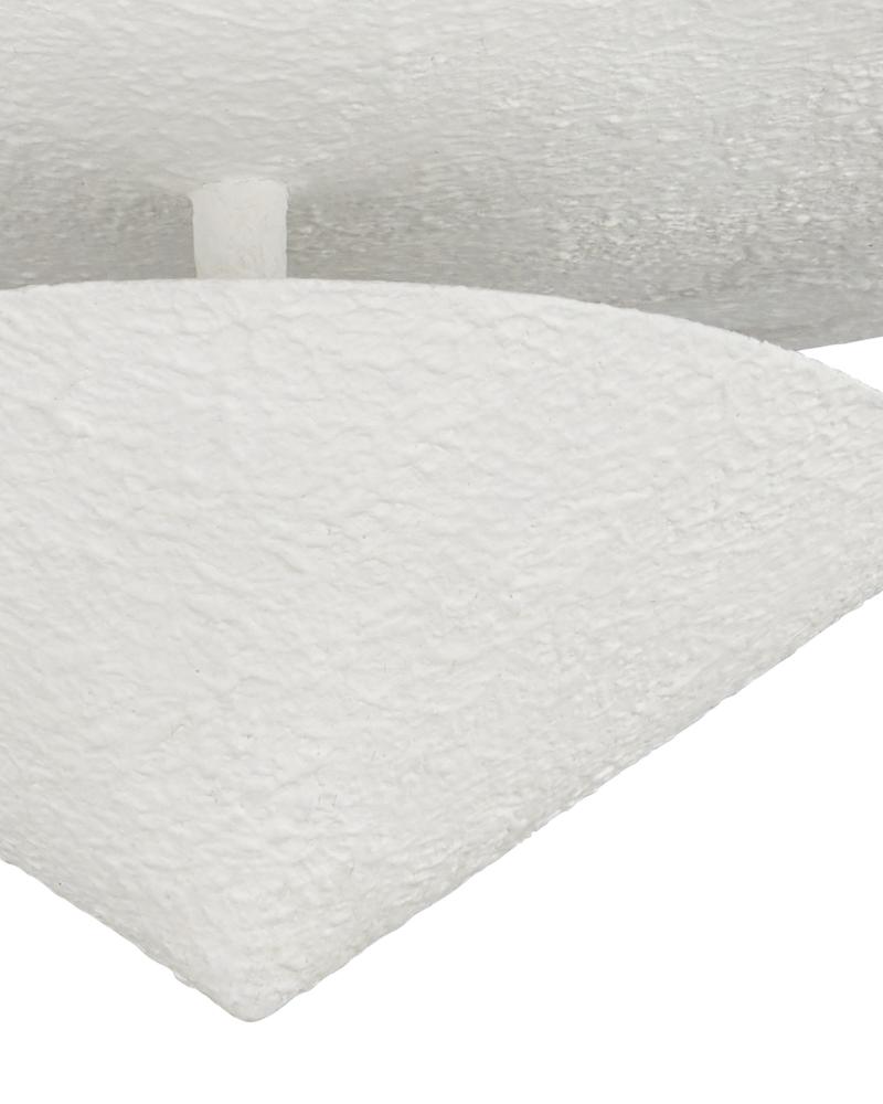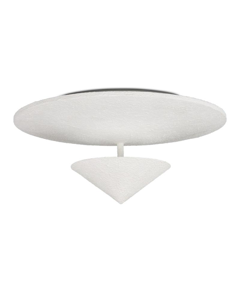 Playing with a geometrical shape that creates up-light, the Empyrean Flush Mount was designed with clean lines, making it as contemporary as designs come. The cone shape of the bottom feature is a design detail that brings added interest to the profile of this white flush mount. The wrought iron fixture is covered in a yeso blanco finish to add a subtle texture to the decidedly modern flush mount.
