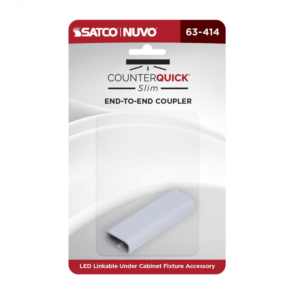 Connect two cables together using the 63-414 coupler in a white finish, to extend the overall length of your CounterQuick Slim under cabinet system. No need to cut and splice just plug in and go.