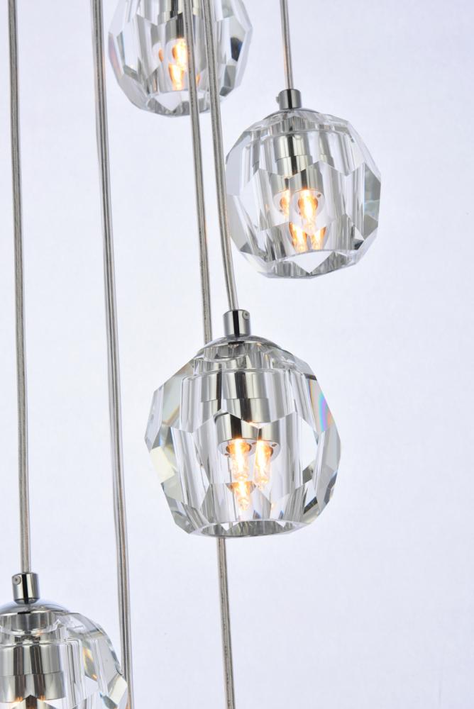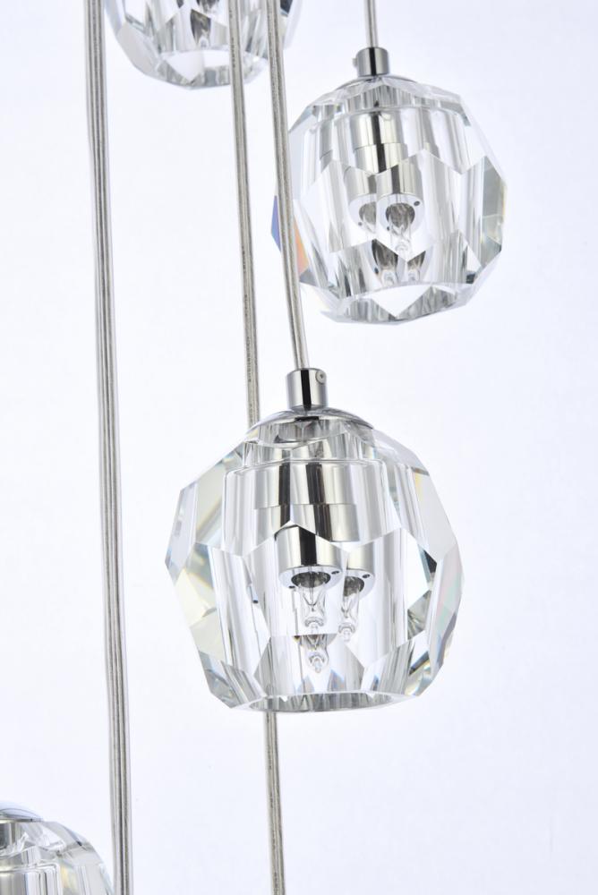 Like enchanting bubbles of air surfacing from the fathoms of the deep sea, the Eren contemporary hanging pendant adds lighting with richness and grace. The layering of clear crystal globes offer softened, harmonious light to match a variety of home décor. Creating an environment of sophistication, this beautiful hanging pendant adds drops of magic to express your refined style.