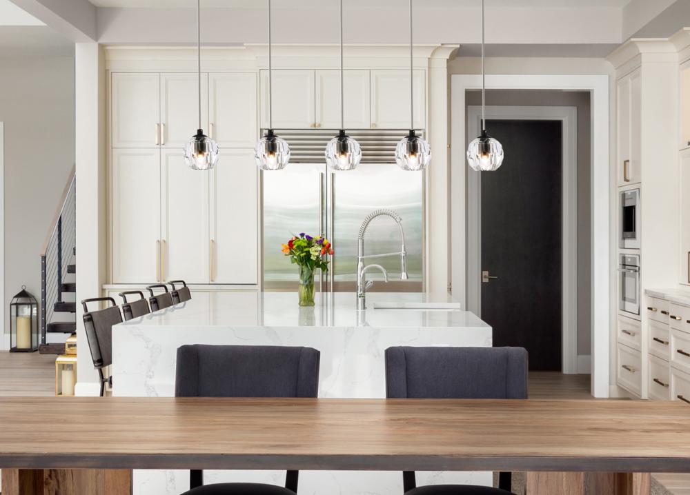 Like enchanting bubbles of air surfacing from the fathoms of the deep sea, the Eren contemporary hanging pendant adds lighting with richness and grace. The layering of clear crystal globes offer softened, harmonious light to match a variety of home décor. Creating an environment of sophistication, this beautiful hanging pendant adds drops of magic to express your refined style.