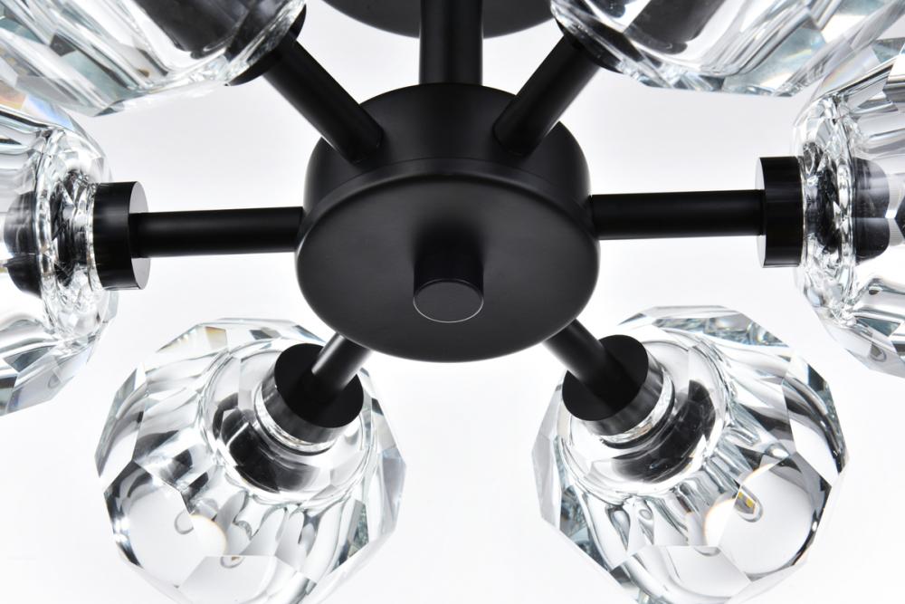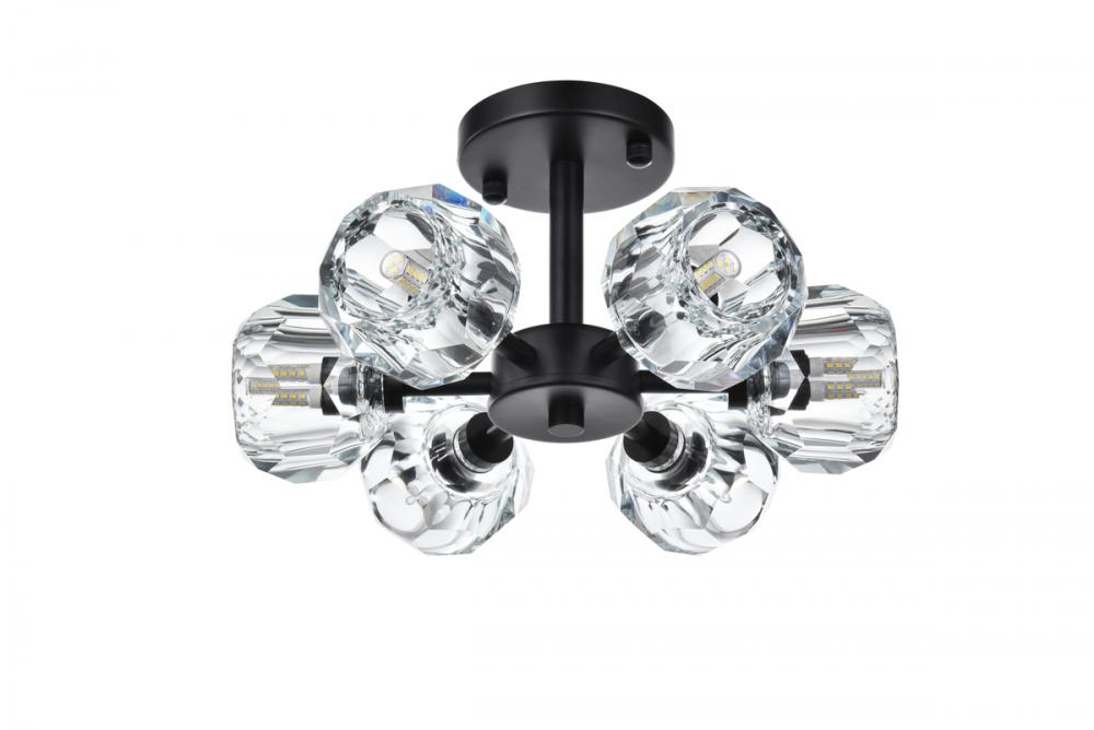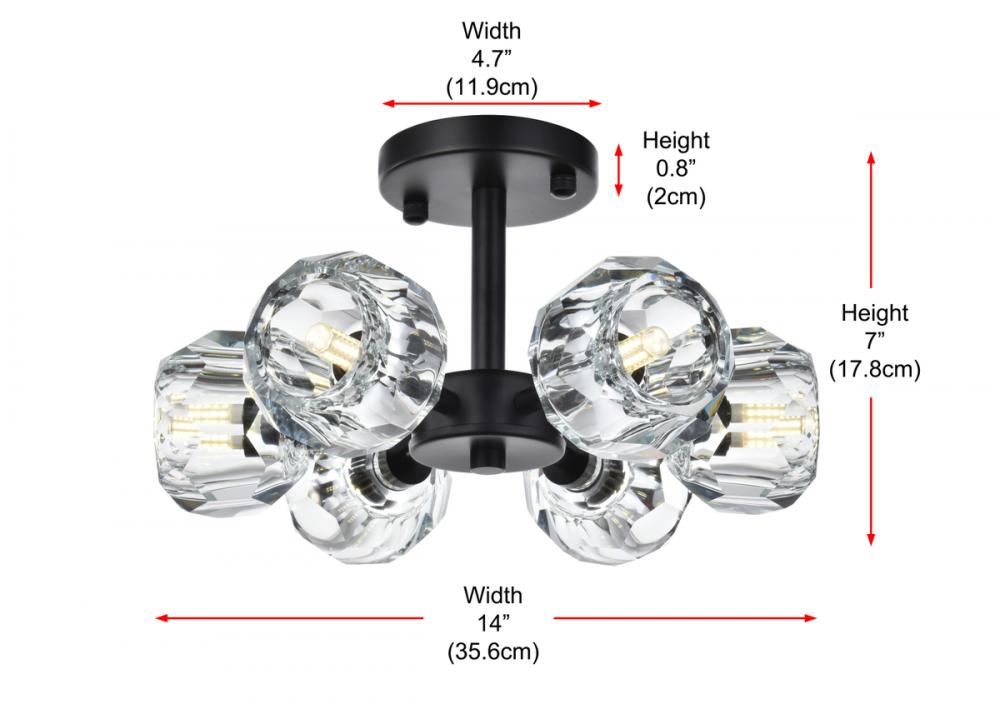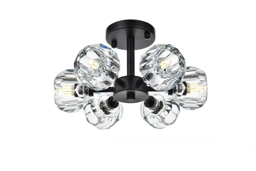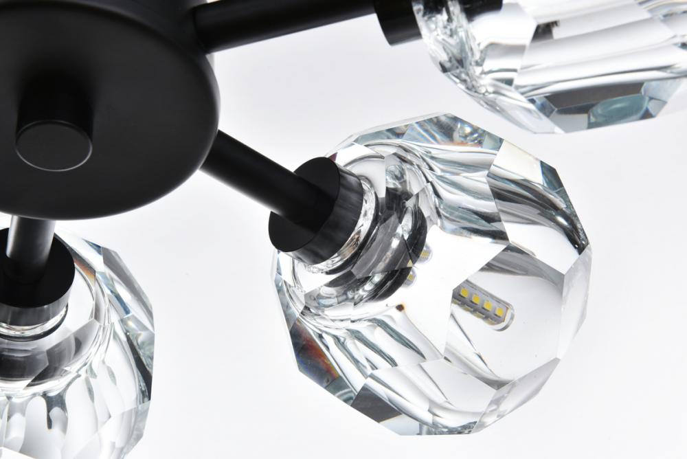 Introducing the Eren 14-inch Flush Mount—a perfect synthesis of elegance and practicality that effortlessly complements any space. with its compact size and stylish presence, this flush mount is an ideal addition to your decor. The Eren features six lights adorned with faceted crystal glass shades, casting a luxurious and timeless radiance. Crafted with durability in mind, the robust iron base adds a touch of industrial elegance to its contemporary design. Upgrade your decor with the distinctive charm of the Eren 14-inch Flush Mount.