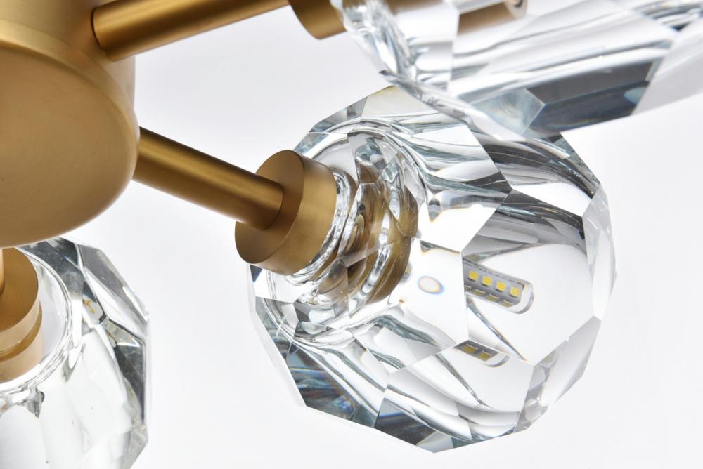 Six lights adorned with faceted crystal glass shades bring a luxurious and dazzling radiance to your space, creating an atmosphere of timeless elegance.