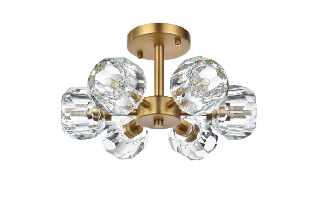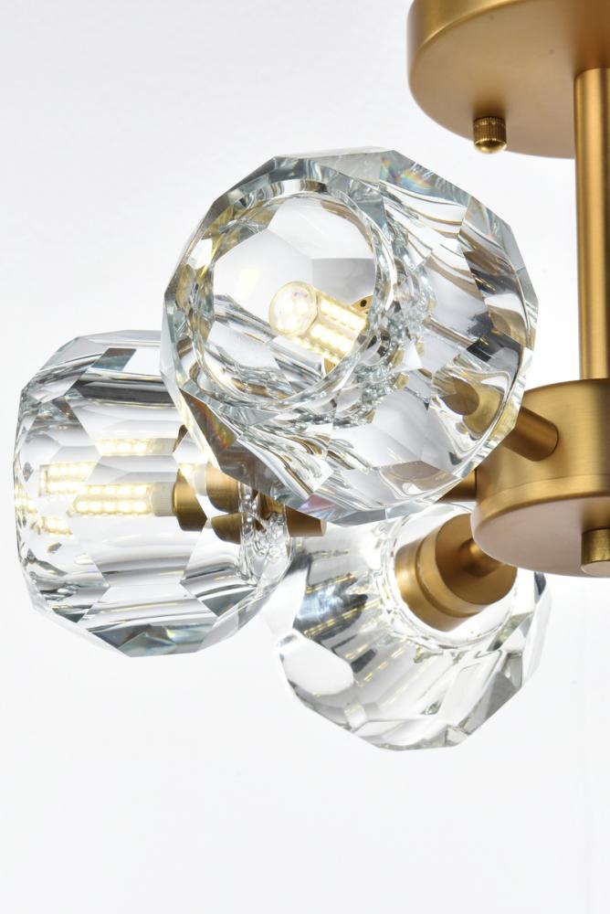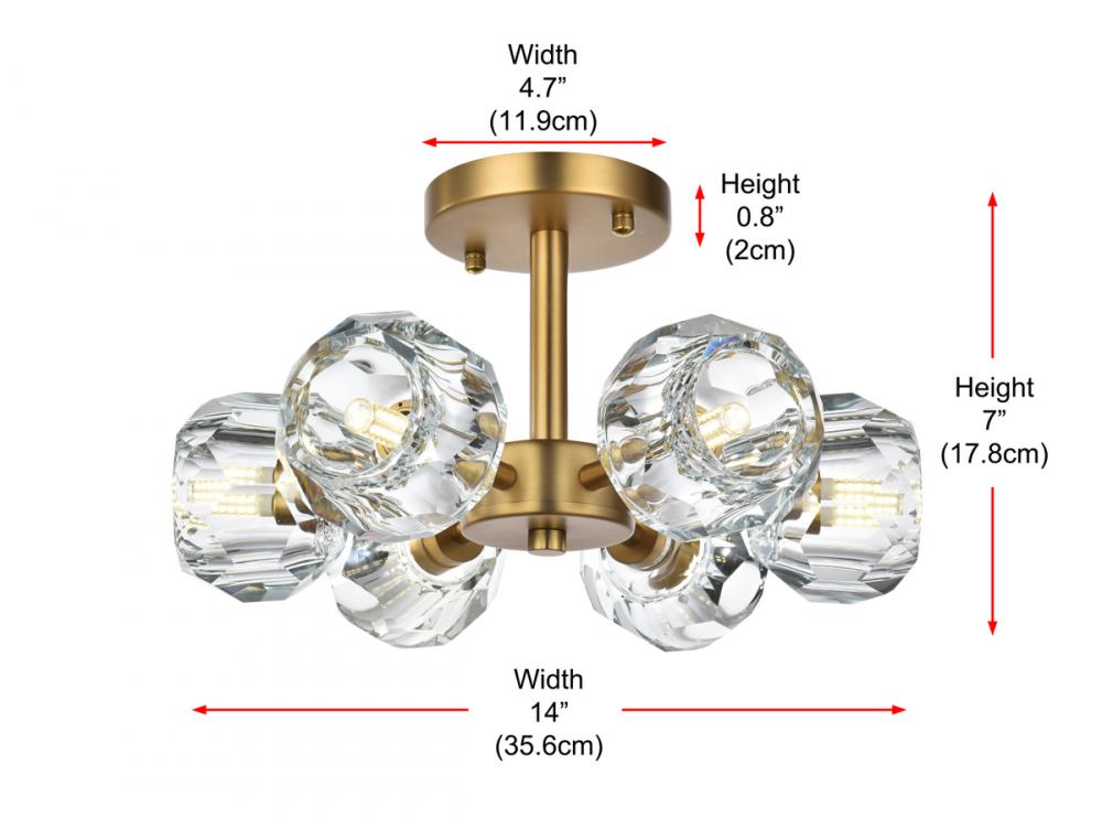 Introducing the Eren 14-inch Flush Mount—a perfect synthesis of elegance and practicality that effortlessly complements any space. with its compact size and stylish presence, this flush mount is an ideal addition to your decor. The Eren features six lights adorned with faceted crystal glass shades, casting a luxurious and timeless radiance. Crafted with durability in mind, the robust iron base adds a touch of industrial elegance to its contemporary design. Upgrade your decor with the distinctive charm of the Eren 14-inch Flush Mount.