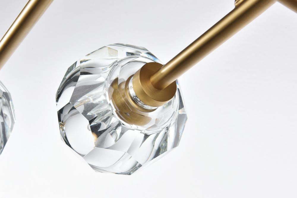 Eight lights adorned with faceted crystal glass shades bring a luxurious and dazzling radiance to your space, creating an atmosphere of timeless elegance.