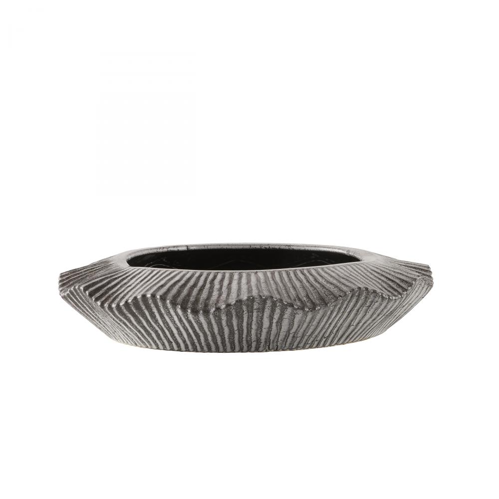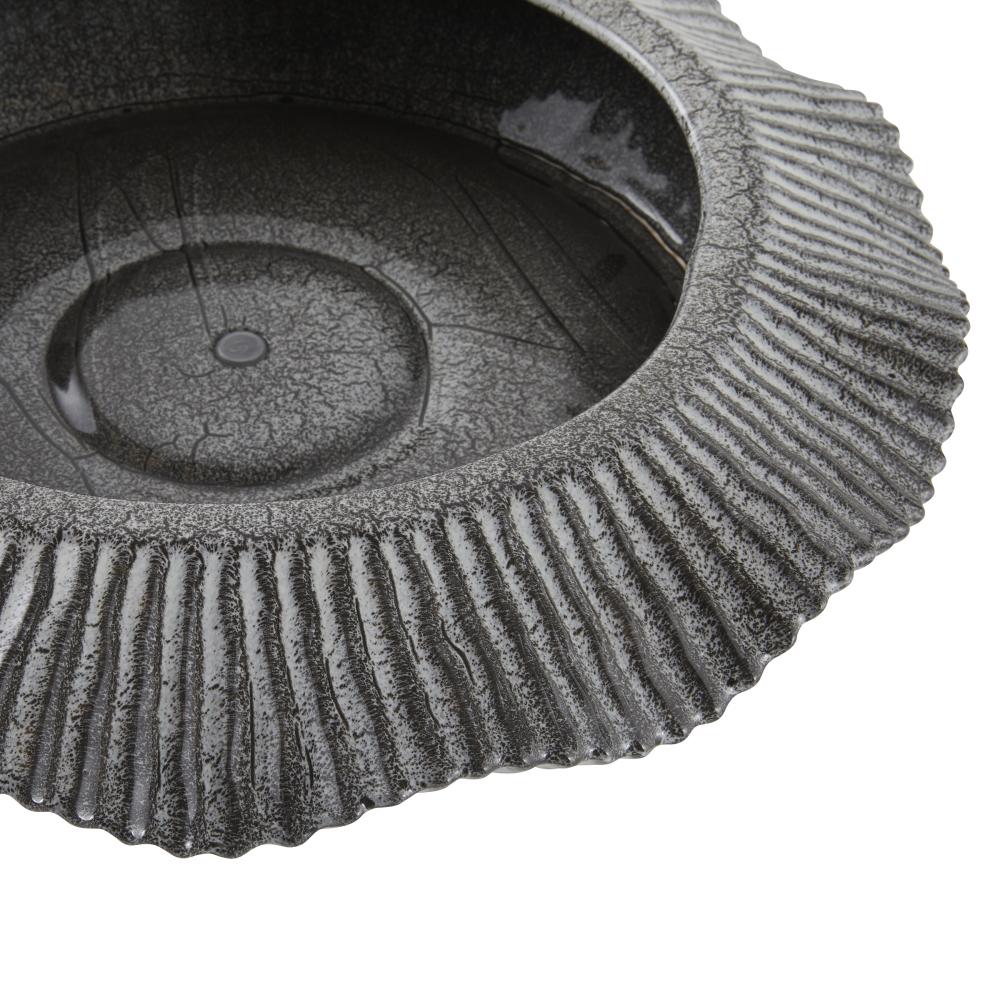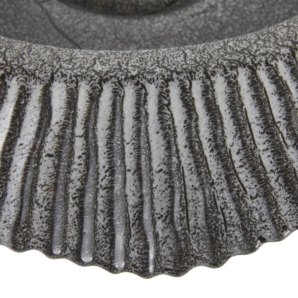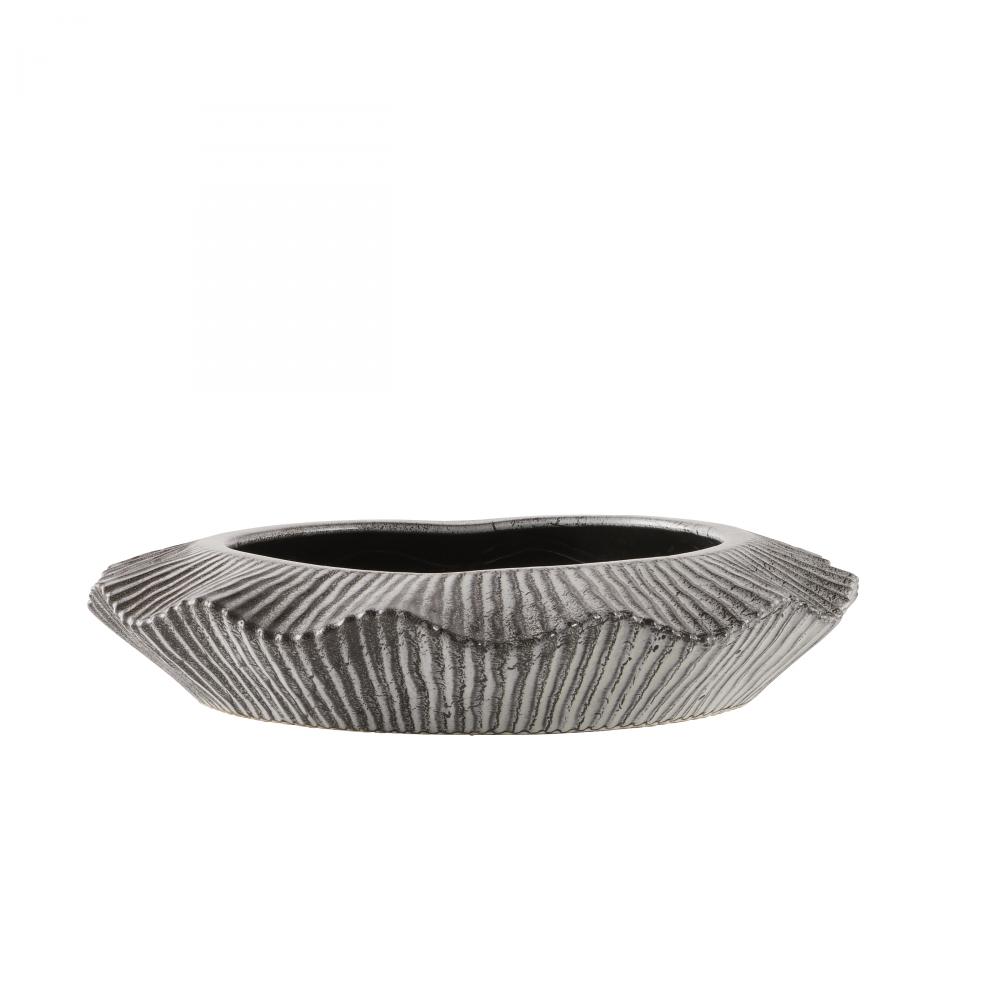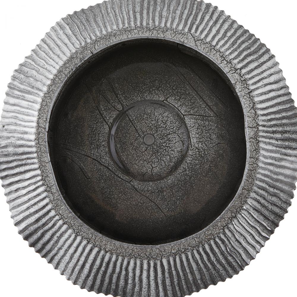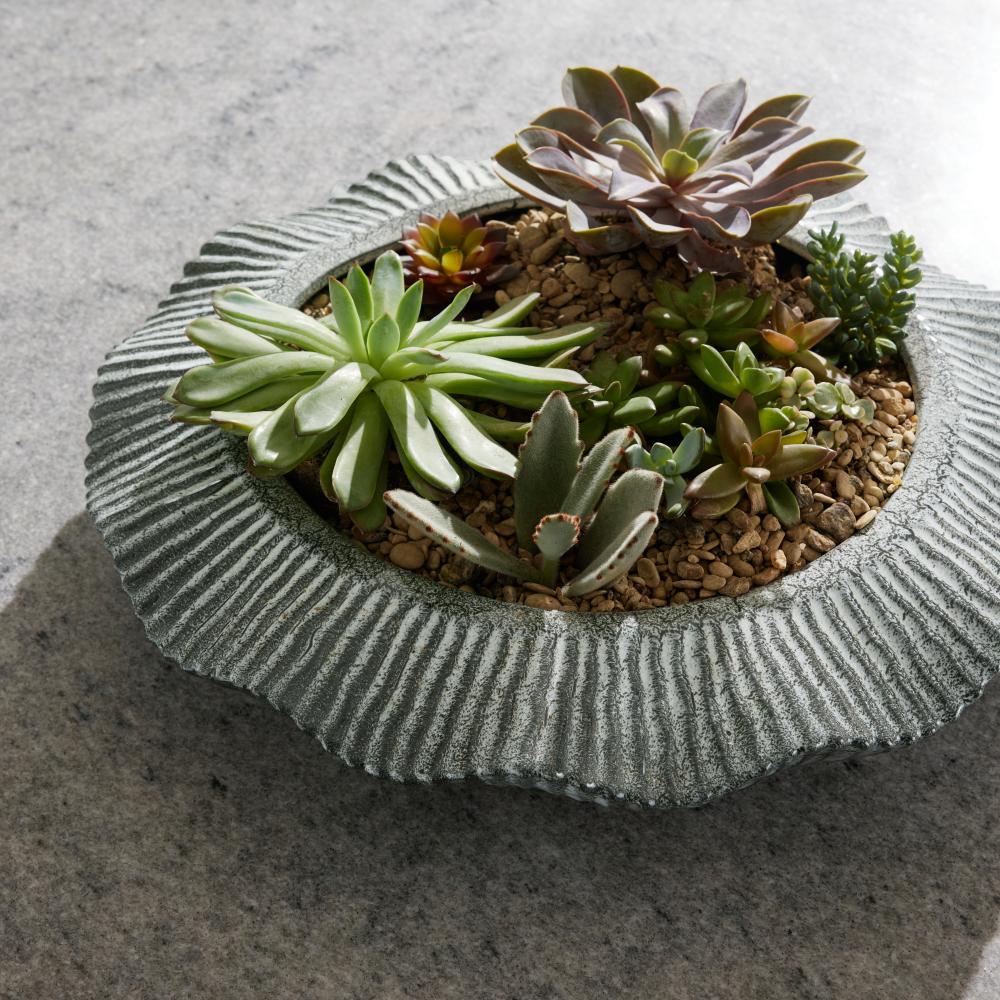 With its heavily textured ceramic surface and hand-thrown form, the rippling lines of our Escada recall gentle waves washing the shore. Glazed with a reactive platinum crackle finish and finished with a drainage hole, it makes an artistic home for a favorite plant. Clear rubber stopper. Finish will vary.