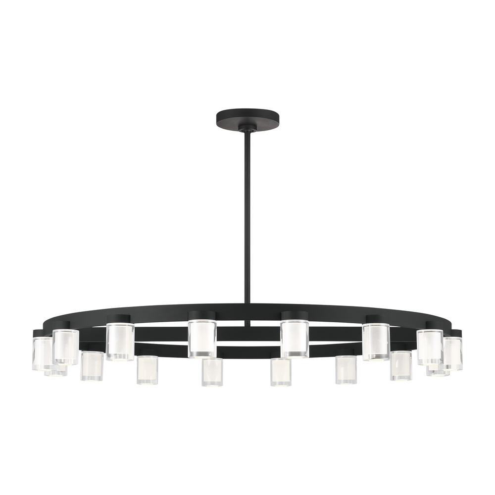 The Esfera Large Chandelier by Kelly Wearstler for Visual Comfort Modern realizes the beauty of elemental materials and spatial symmetries. In an elevated exchange of visual textures and clarity of form, the transitional design of this piece is a modern portrait of the convergence of cylindrical multi-dimensional prisms as integral sources of light with simple, linear metal detailing in varied geometric gestures as the connecting base.